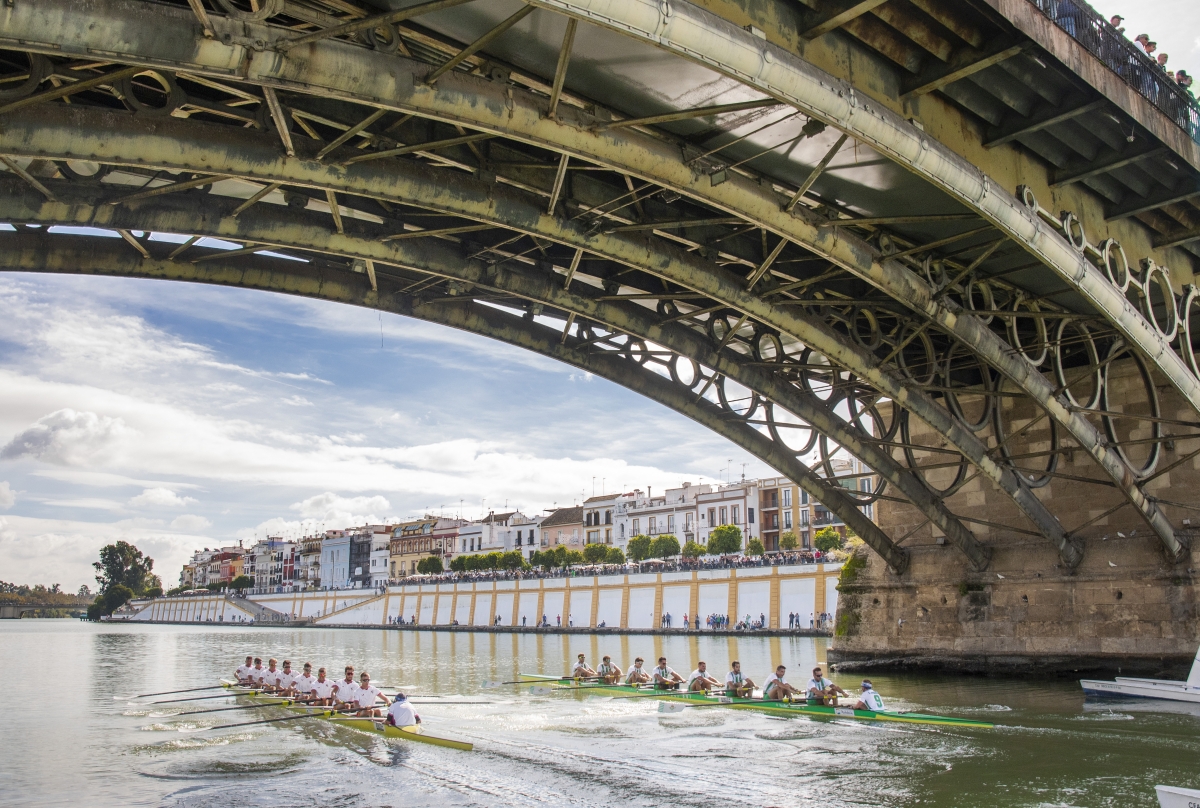 El río Guadalquivir —epicentro del remo sevillano— atraviesa la ciudad y ofrece una pista olímpica de 2.000 metros justo en el centro histórico. Su acceso fácil a pie o en bicicleta, su tranquilidad (al estar cegado al norte) y su protección contra vientos y mareas, lo convierten en uno de los mejores entornos del mundo para entrenar y competir.